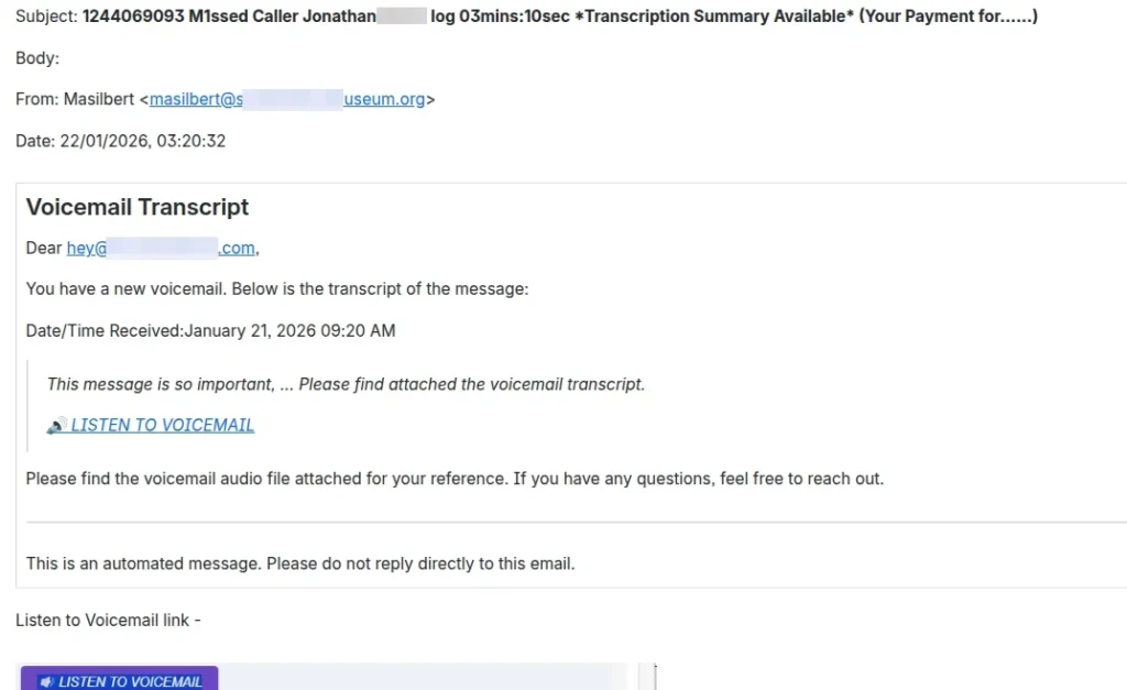 A voicemail from someone at a museum? Why? If the training works, why did that email scam work?